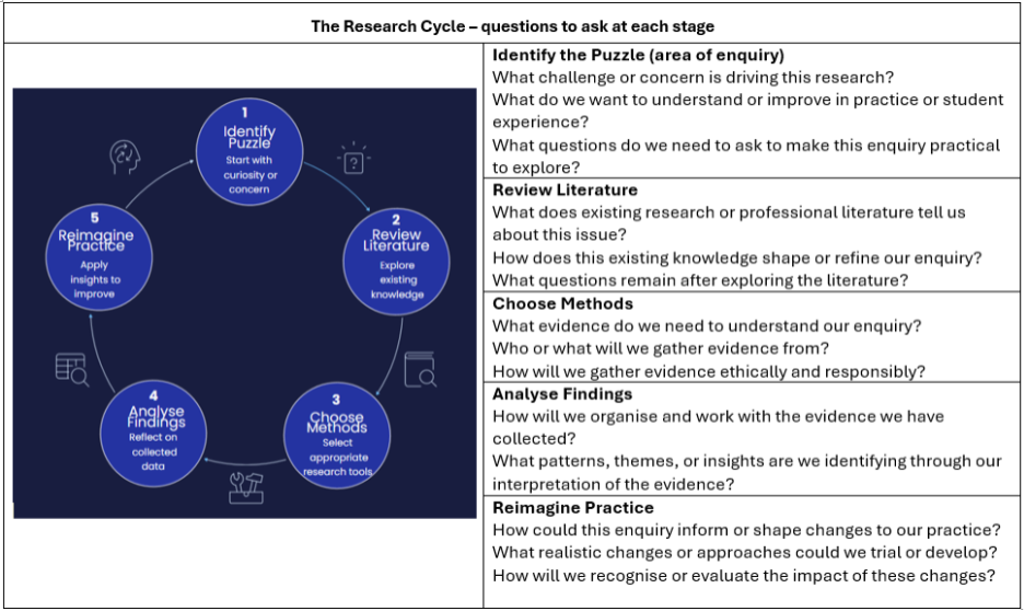 We then adopted a research cycle with guiding questions (Fig 2) to further support colleagues in adopting a systematic approach to their research: