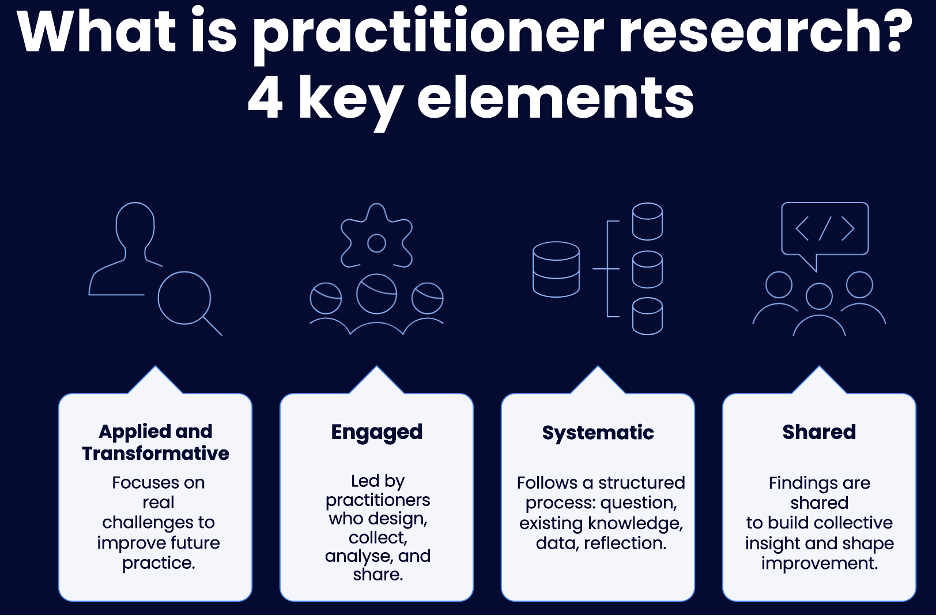 Naming the work is not cosmetic, it is cultural. It signals that practitioner knowledge is legitimate knowledge, and practitioner research does count. When we name the work and share it publicly, we are not only developing practitioner research within our own institutions, we are contributing to a shared map of professional knowledge.